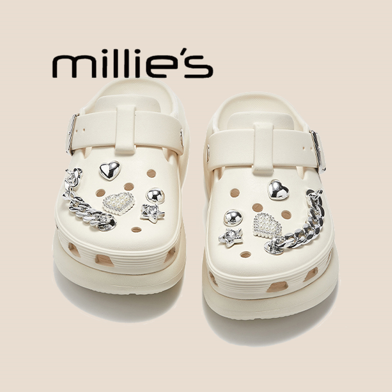 MILLIE'S/妙丽洞洞鞋女外穿防滑防臭沙滩鞋2025新款夏包头凉拖鞋