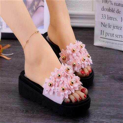 极速拖鞋女夏松糕厚底居家软底一字拖防滑沙滩鞋韩版时尚铁环高跟