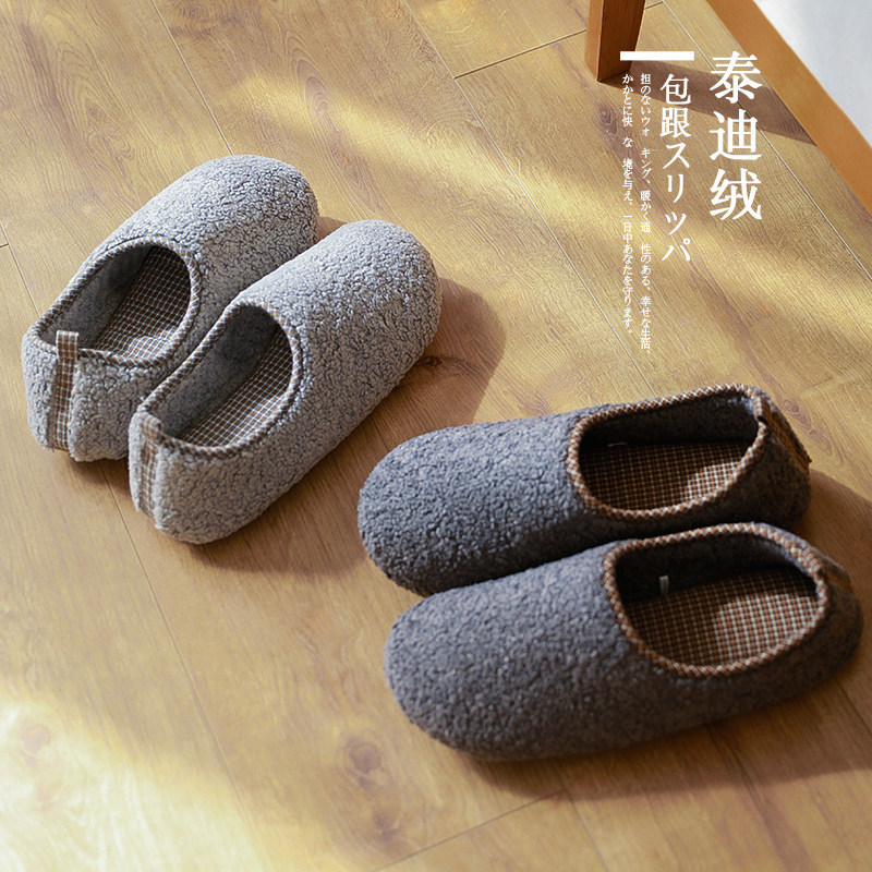加大码棉拖鞋包跟女毛绒保暖软底B静音地板家用月子鞋厚底可机洗
