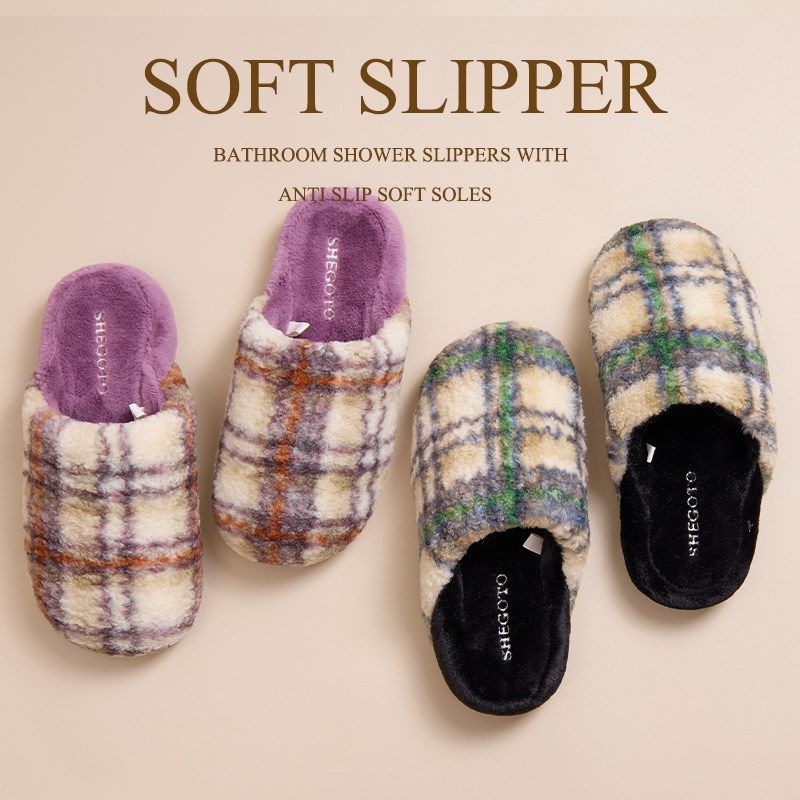 出口日本外贸订单复古条纹室内静音地板软底居家秋冬加绒保暖拖鞋