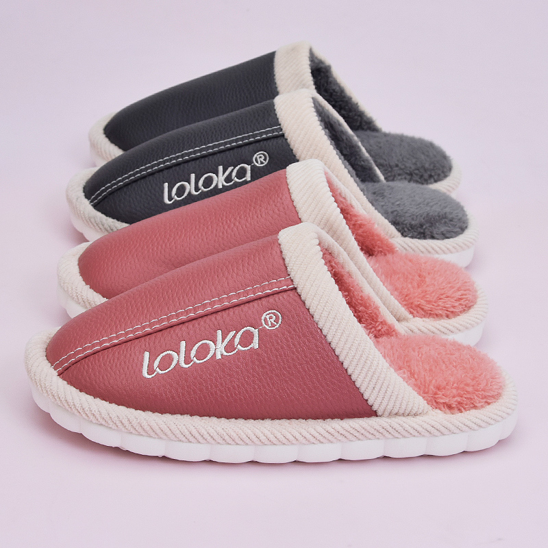 路路佳旗舰店家居秋冬PU鞋面防水室内瓷砖地面鞋底防滑男女棉拖鞋