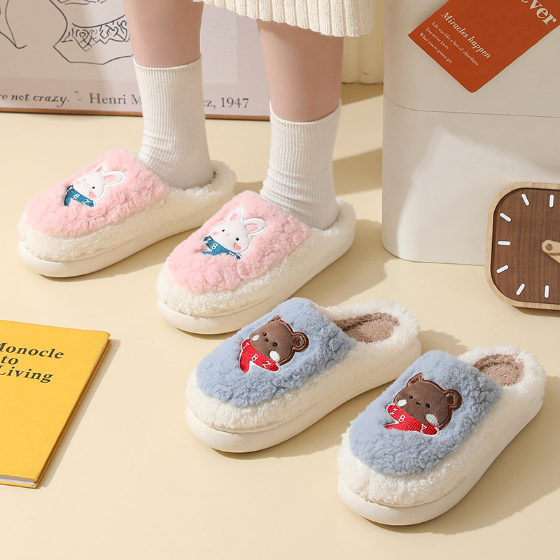 极速棉拖鞋女秋冬室内居家保暖可爱厚底防L滑外穿情侣学生毛绒绒