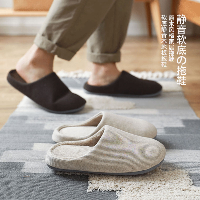 日式木地板静音开口棉拖鞋女春秋居家抗菌透气防滑软底男家用情侣