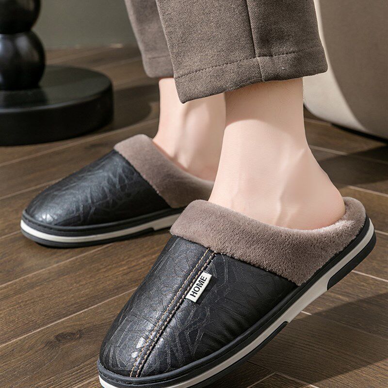 防滑棉拖鞋老年人冬季防水保暖中年皮居家室内厚底男女士