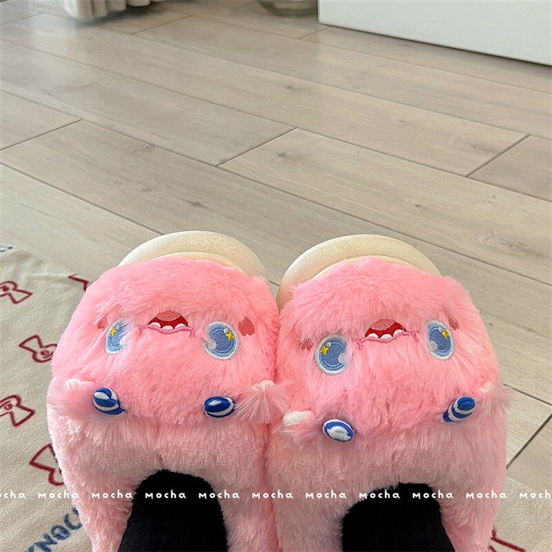可爱卡通雪莉玫毛毛拖鞋女居家外穿露趾2025秋冬新款加绒保暖棉拖