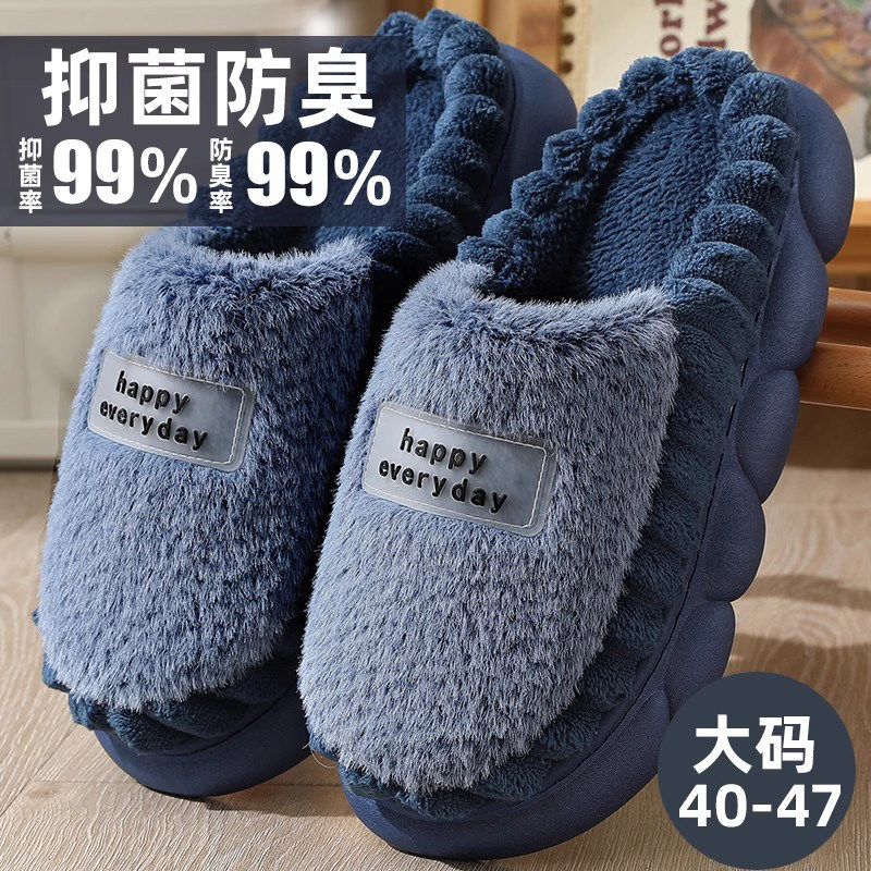 棉拖鞋男士冬季2024新款室内加肥加大码46 47厚底软防滑防臭保暖