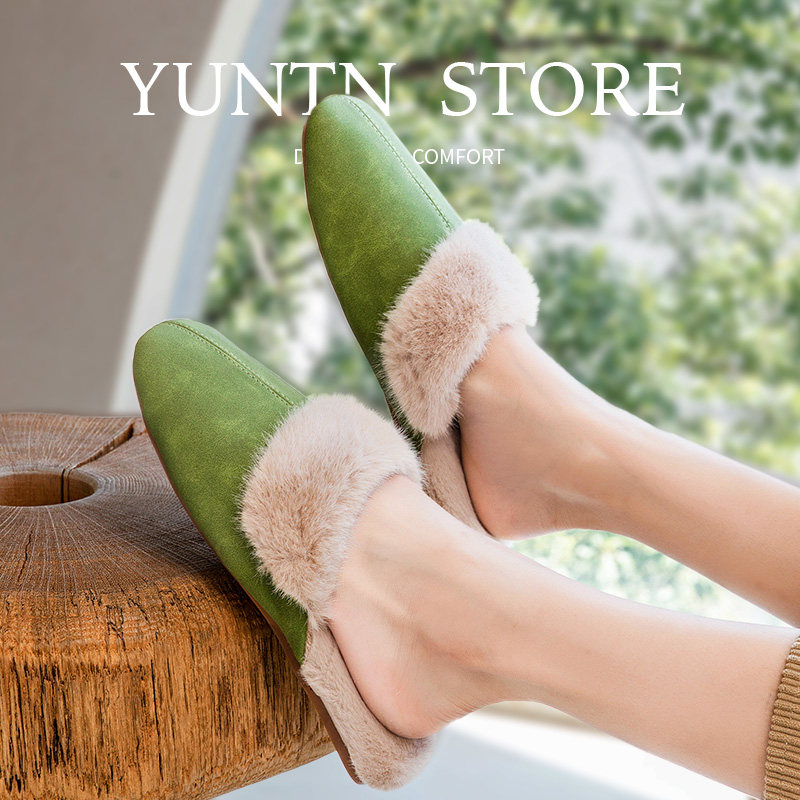 秋冬温柔毛口f高级感防水PU皮面保暖棉拖鞋女室内牛筋底时尚居家