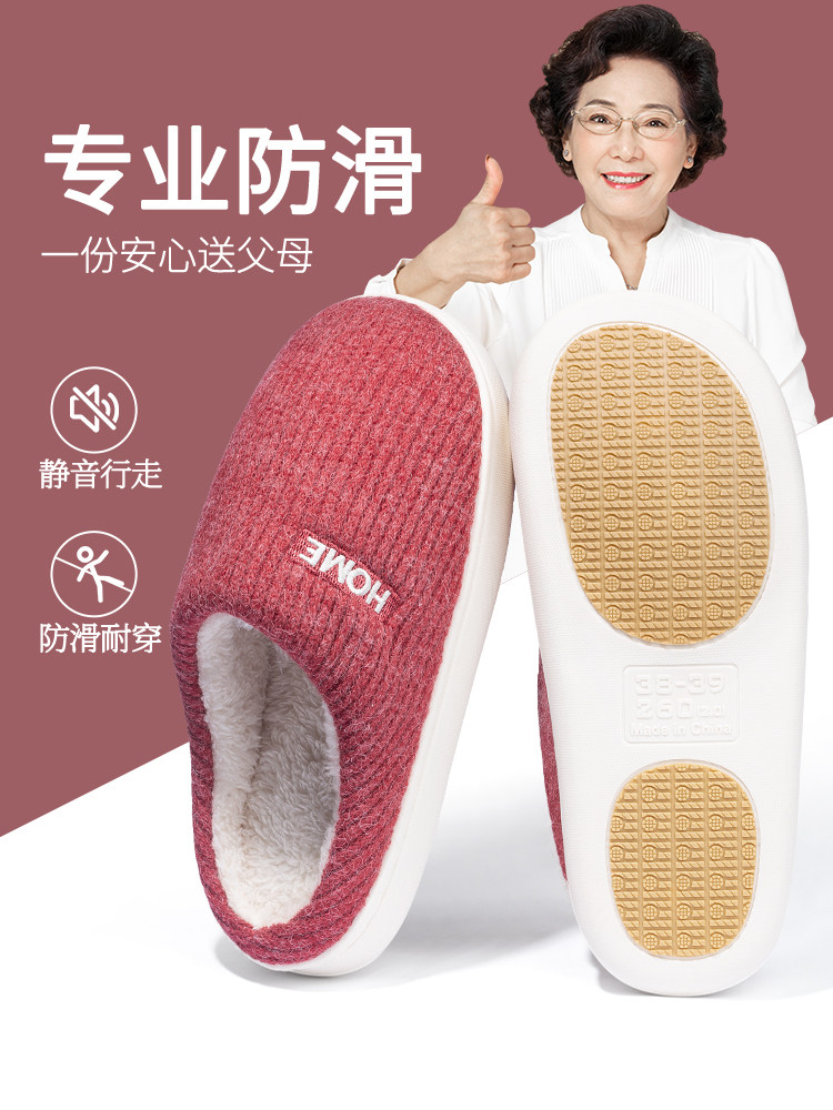 老人防水棉拖鞋女士冬季外穿2024新款室内家居防滑保暖pu棉鞋男款