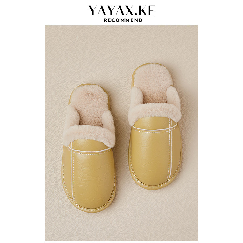 防水PU皮棉拖鞋女冬季居家室内情侣家G用毛绒保暖防滑牛筋底拖鞋