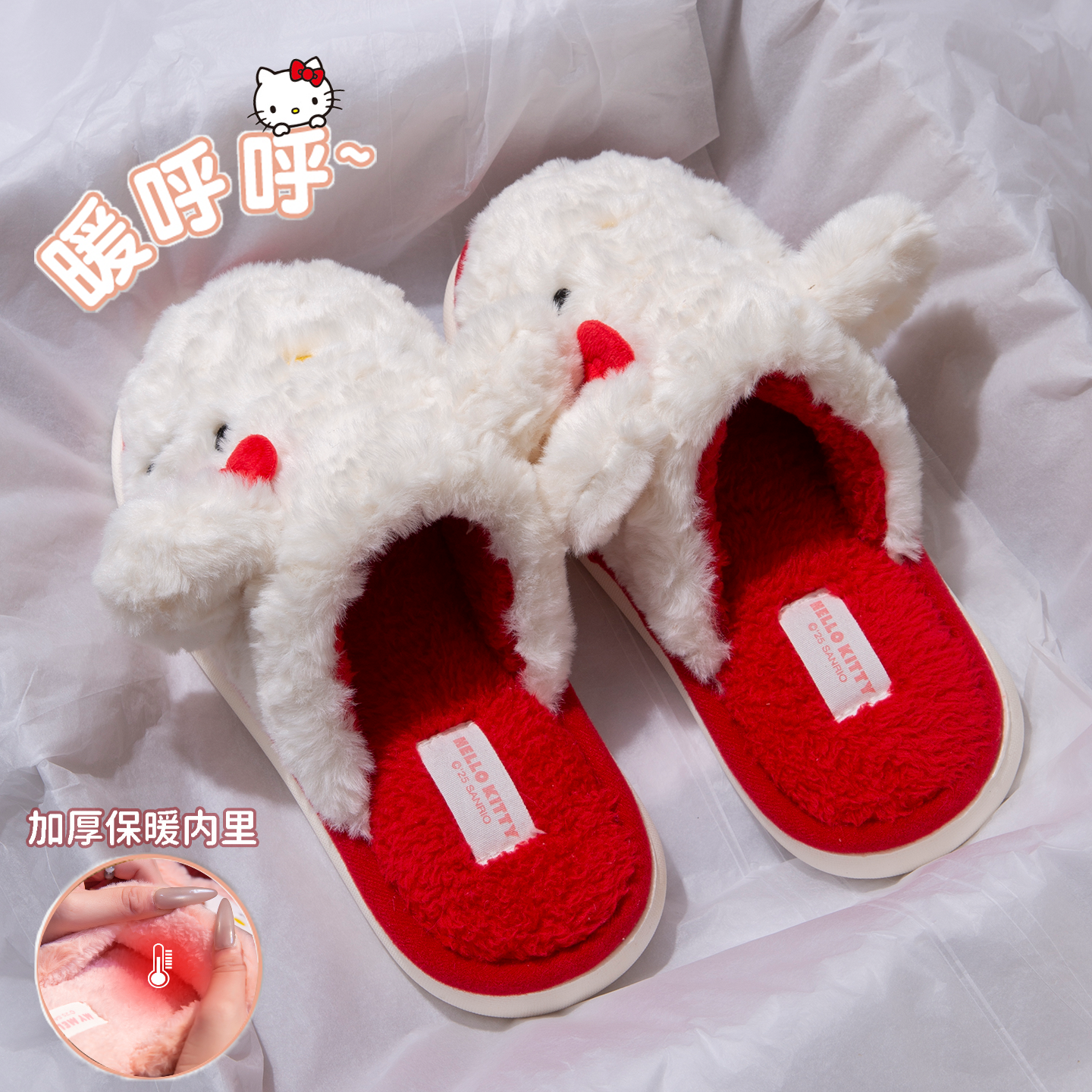 hellokitty毛绒棉拖鞋女秋冬季2025新款室内保暖防滑儿童可爱拖鞋