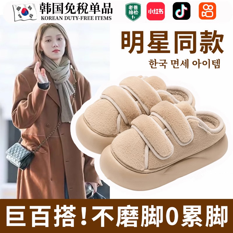 韩国防滑棉拖鞋女2024新t款秋冬季外穿ins风厚底增高保暖毛绒防臭