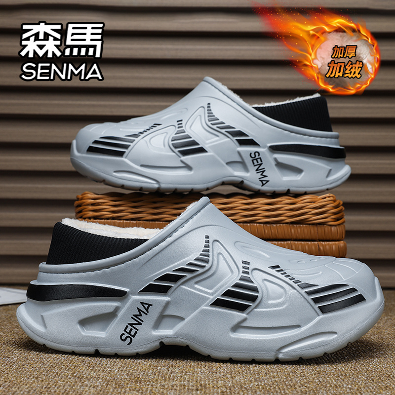 森马棉拖鞋男冬季外穿加绒保暖加厚包跟棉鞋居家室内防水情侣拖鞋