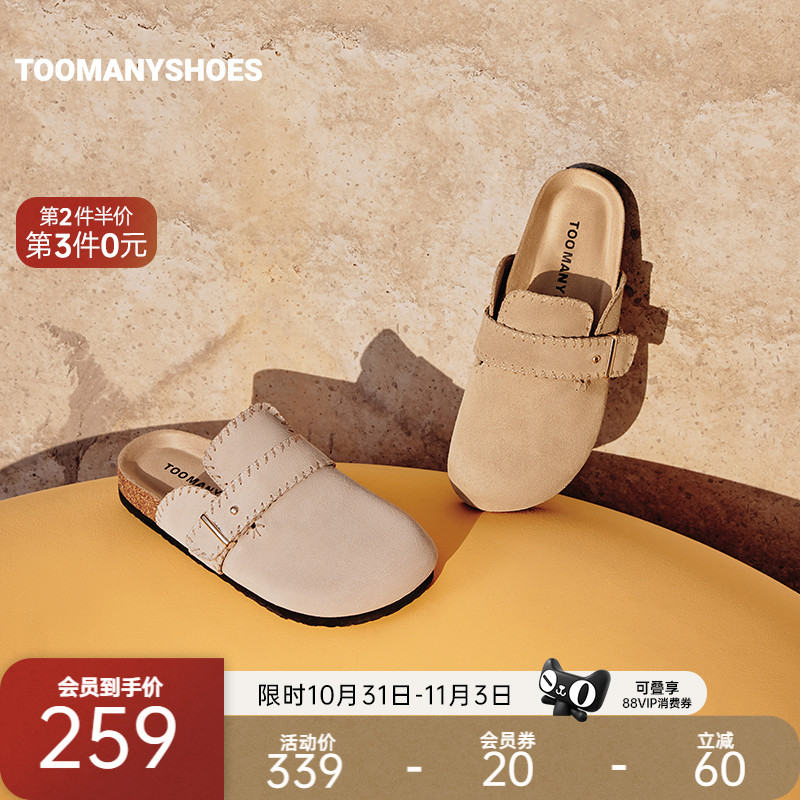 Toomanyshoes勃肯鞋25新款烤板栗包头凉鞋沙滩鞋真皮厚底拖鞋外穿