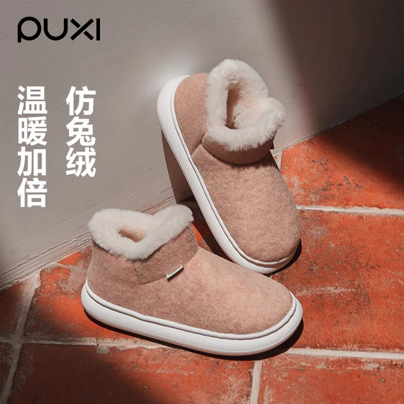 朴西冬季包跟棉拖鞋女加绒加厚底雪地靴保暖百搭防滑高帮棉鞋男