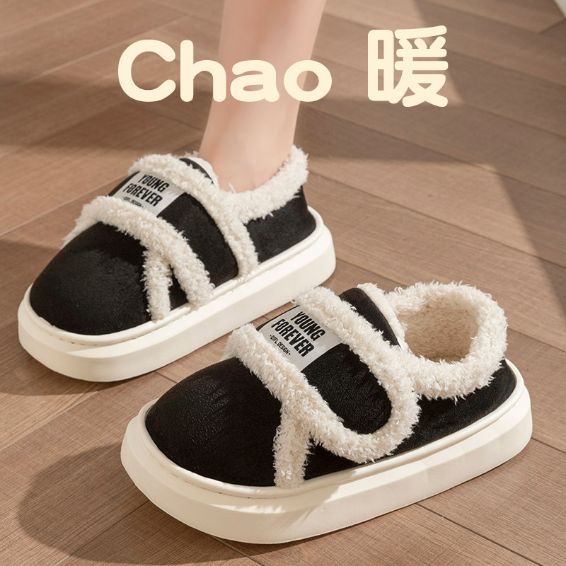 博肯棉拖鞋女款包跟冬季外穿2025新款室内家居防滑保暖毛毛绒棉鞋