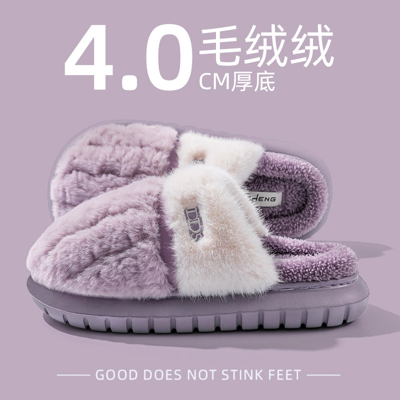 踩屎感毛绒棉拖鞋女士秋冬季2024新款家居室内保暖U防滑情侣棉拖