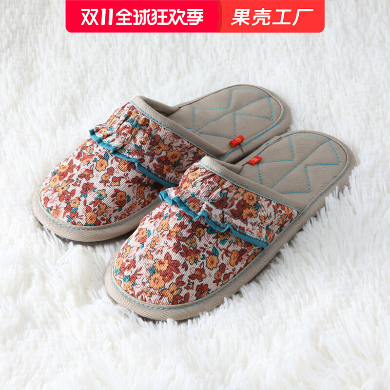 居家室内保暖f女士拖鞋纯棉布底防脚臭可机洗秋冬季韩国地板包头