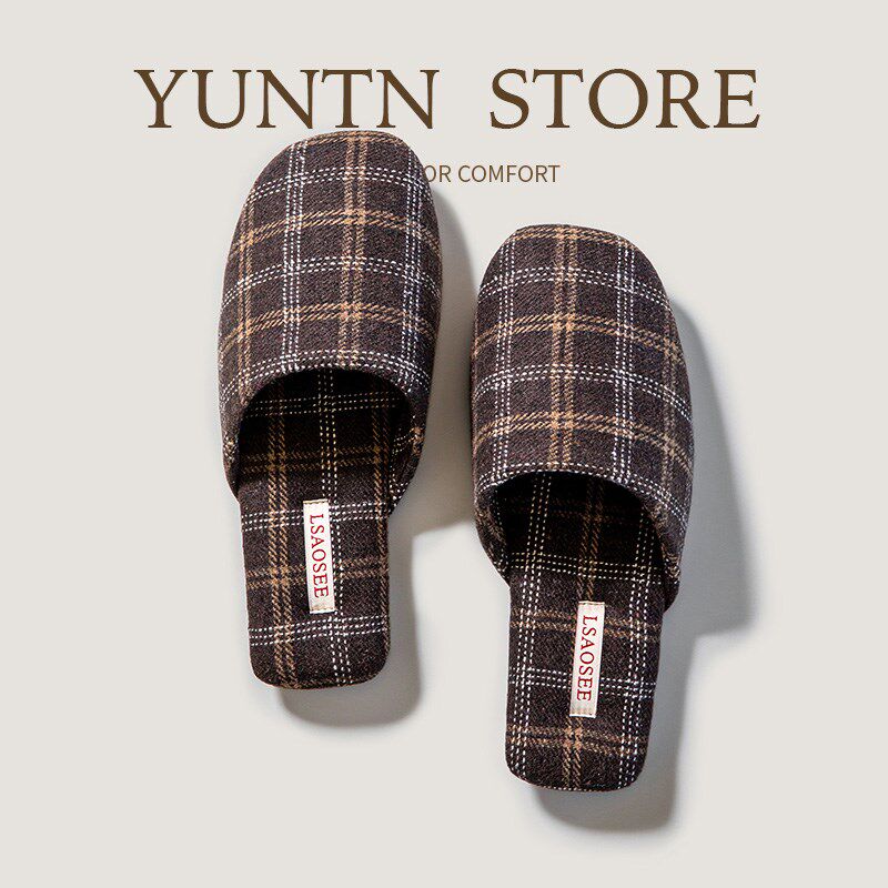 秋冬英伦格子风简约高级感情侣y棉拖鞋女透气软底防滑牛筋底室内