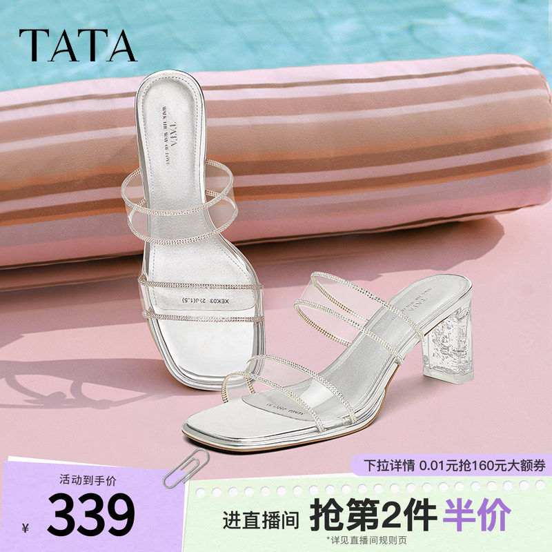 TATA他她法式气质高跟拖鞋女鞋通勤一字带休闲凉鞋夏新款XEK03BT5