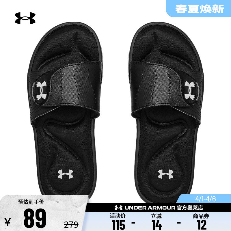 安德玛官方UA Ignite女子海绵鞋垫舒适魔术贴运动休闲拖鞋3022717