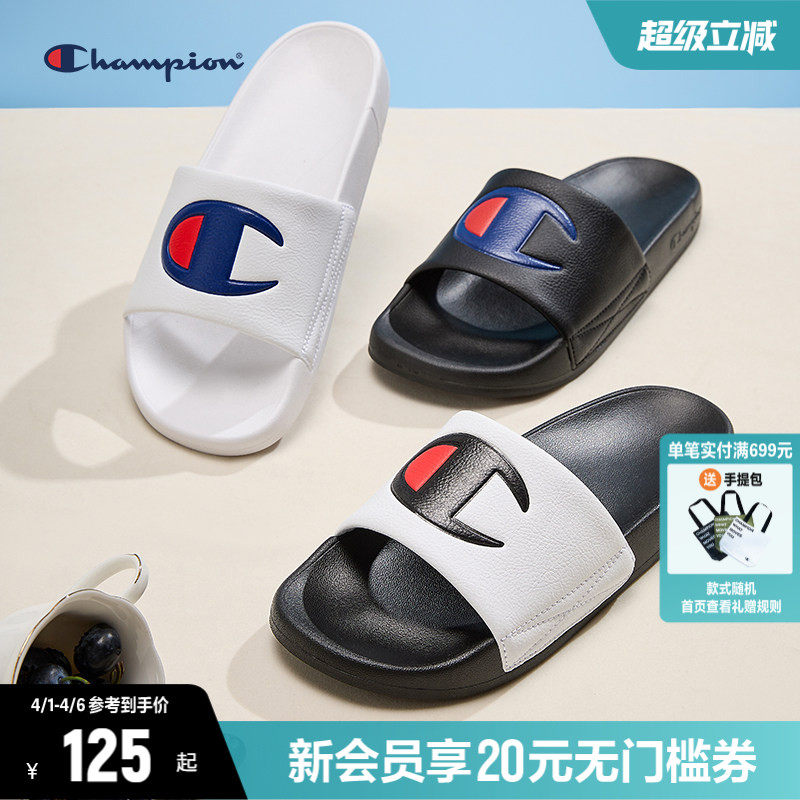 Champion冠军拖鞋情侣夏季新款一字拖沙滩鞋撞色半拖