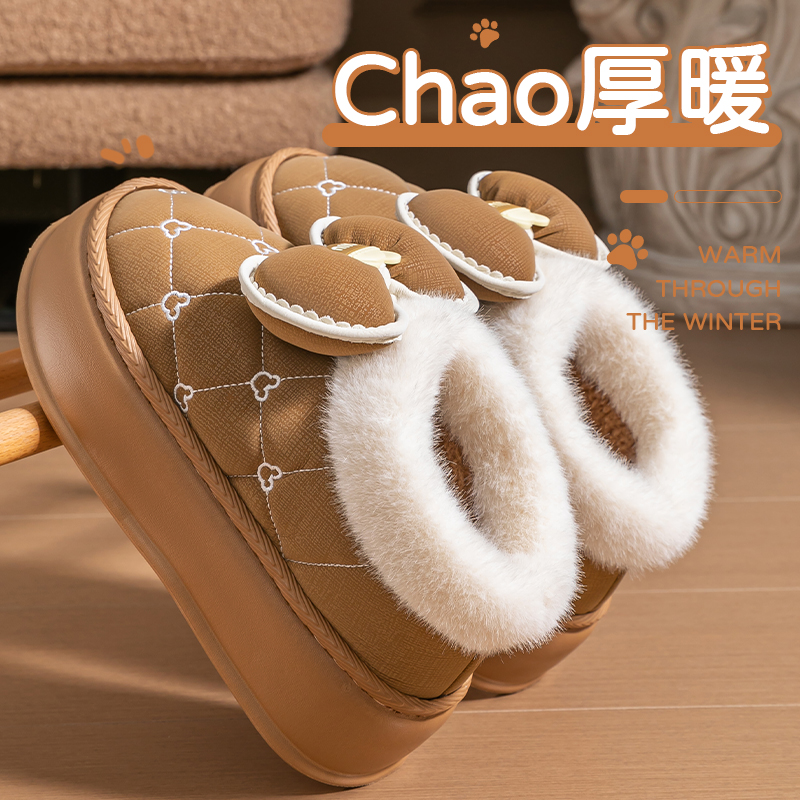 情侣包跟棉拖鞋女冬季厚底居家PU皮防水耐脏拖鞋男冬保暖棉鞋加绒