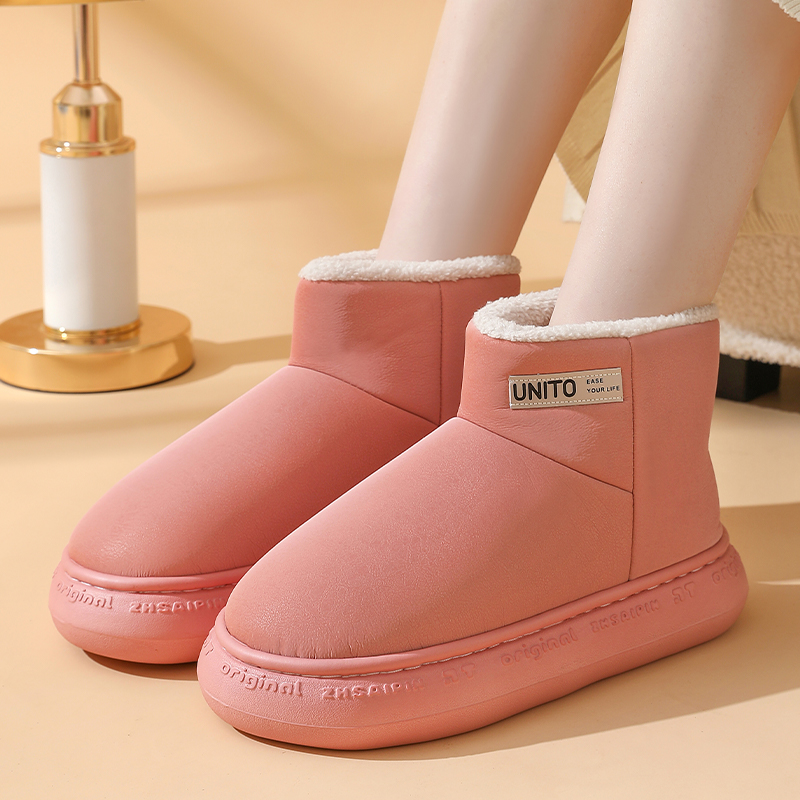高帮防水棉拖鞋女秋冬季2024新款室内家居防滑厚底加绒保暖PU棉鞋
