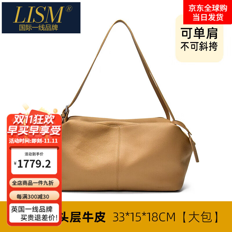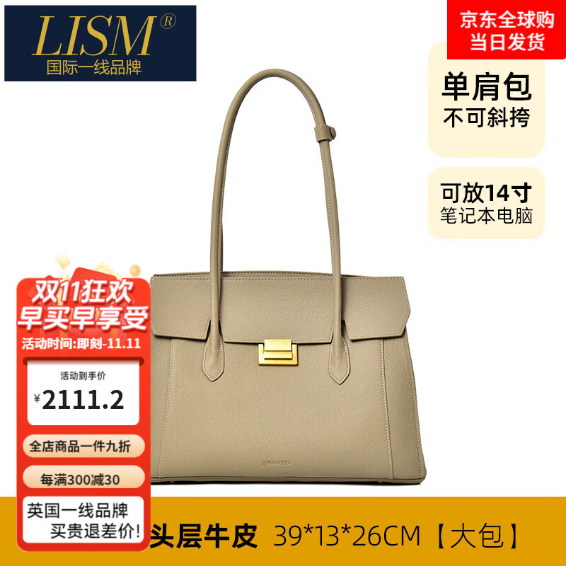 LISM国际一线品牌品牌真皮女包包女式新款大容量牛皮包通勤大包女士时 卡其色 头层牛皮 大包