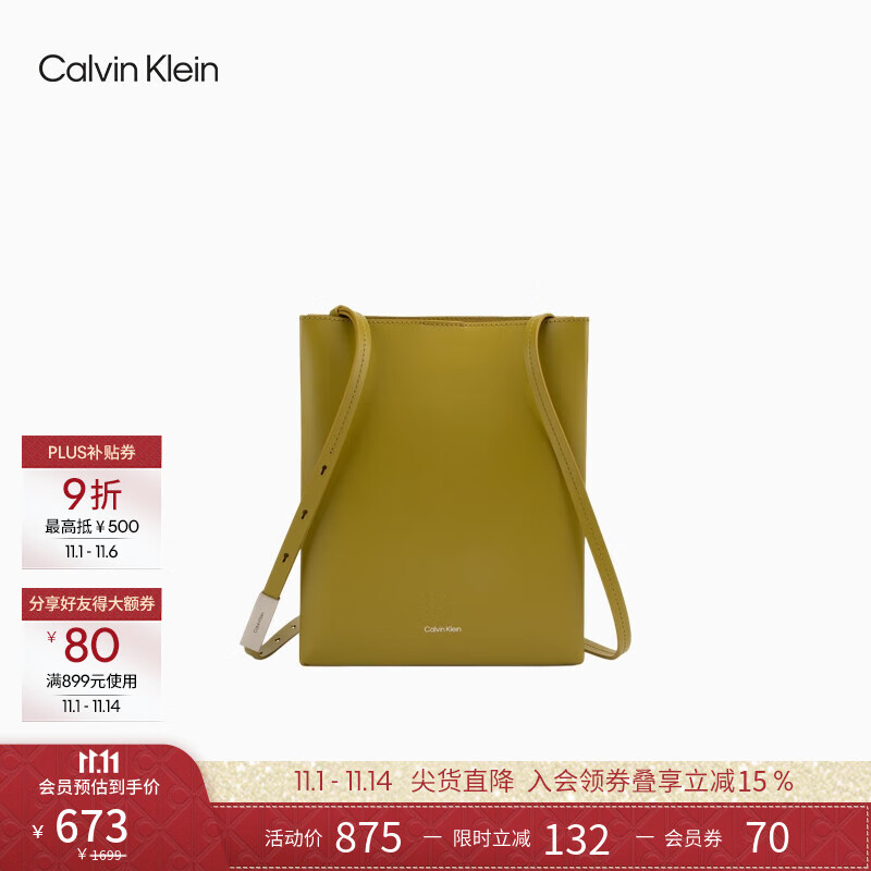 Calvin Klein休闲通勤单肩包礼物真皮牛皮包包纸袋包CK女包斜挎包4F3005G UW3-草黄 OS