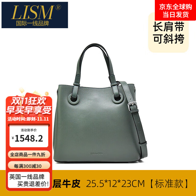 LISM国际一线品牌品牌真皮女包包女式新款大容量牛皮包感水桶包女士手 灰绿色【现货】头层牛皮
