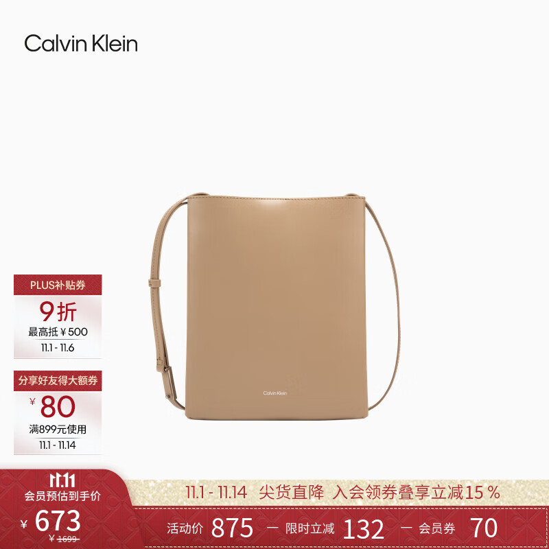 Calvin Klein休闲通勤单肩包礼物真皮牛皮包包纸袋包CK女包斜挎包4F3005G QYL-杏仁棕 OS