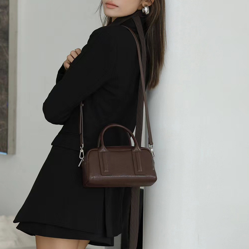 波士顿包植鞣头层牛皮包真皮女包复古手提保龄球包单肩斜挎小方包