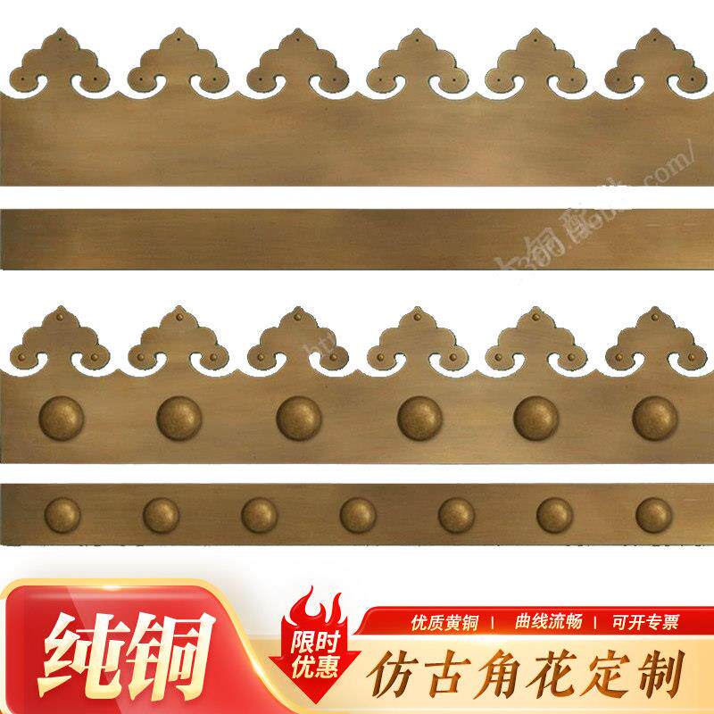 彷古木门包角护角铜条压条大门包边铜如意花铜直条铜钉铜皮包门槛