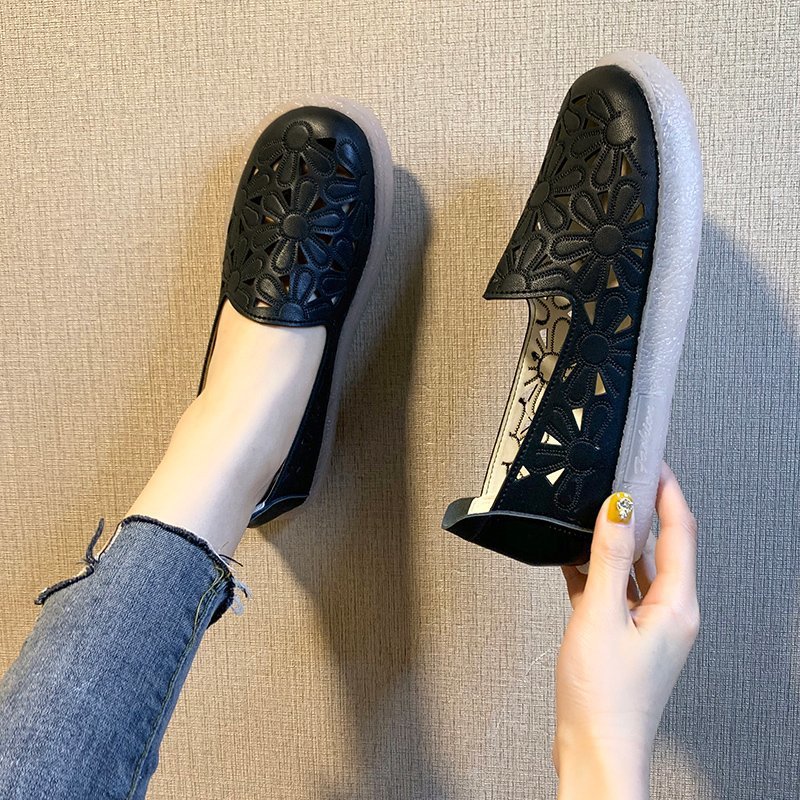 舒服的鞋子软面皮软底鞋女夏镂空透气凉鞋小白休闲真皮包头平底鞋