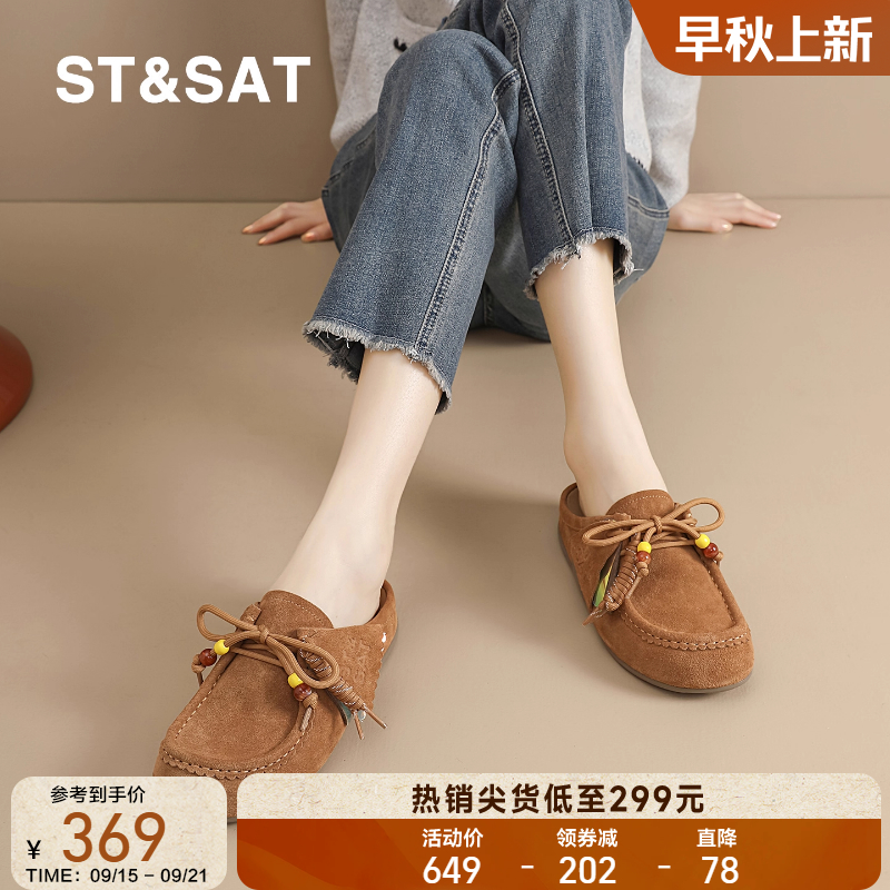 赵逸逸2025夏季新款真皮包头半拖鞋女外穿一脚蹬懒人休闲鞋德训鞋