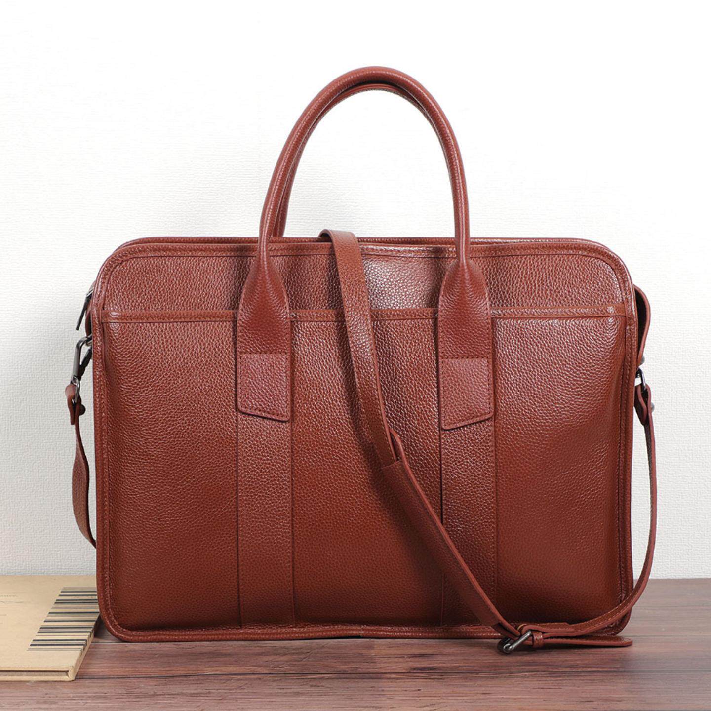 普洛克正品男包 真皮手提包大容量公文包棕色商务包头层牛皮包包
