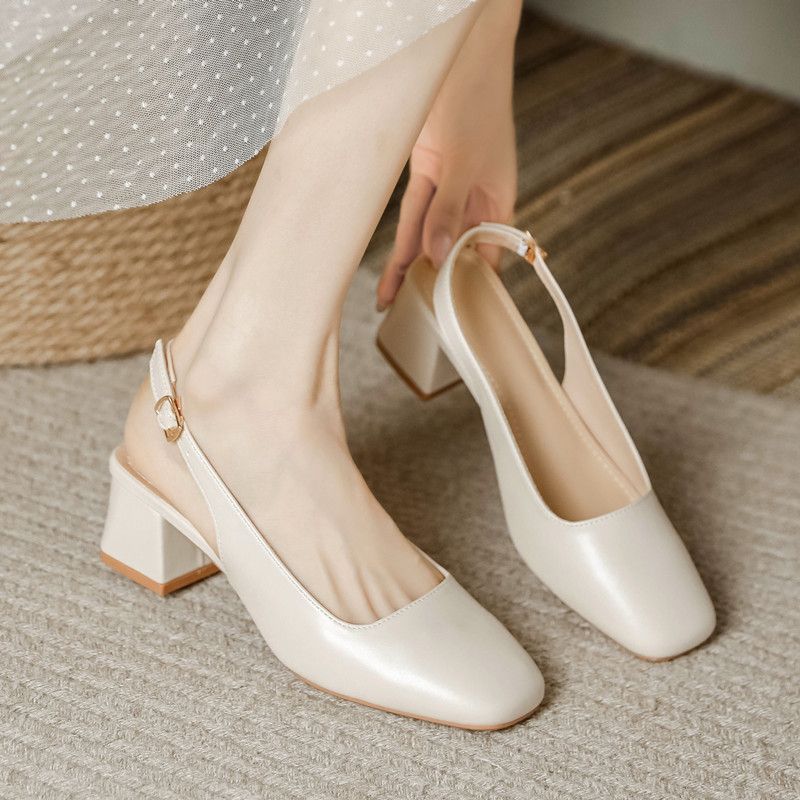 法式真皮包头凉鞋女鞋2025夏季新韩系粗中跟仙女配裙玛丽珍高跟鞋
