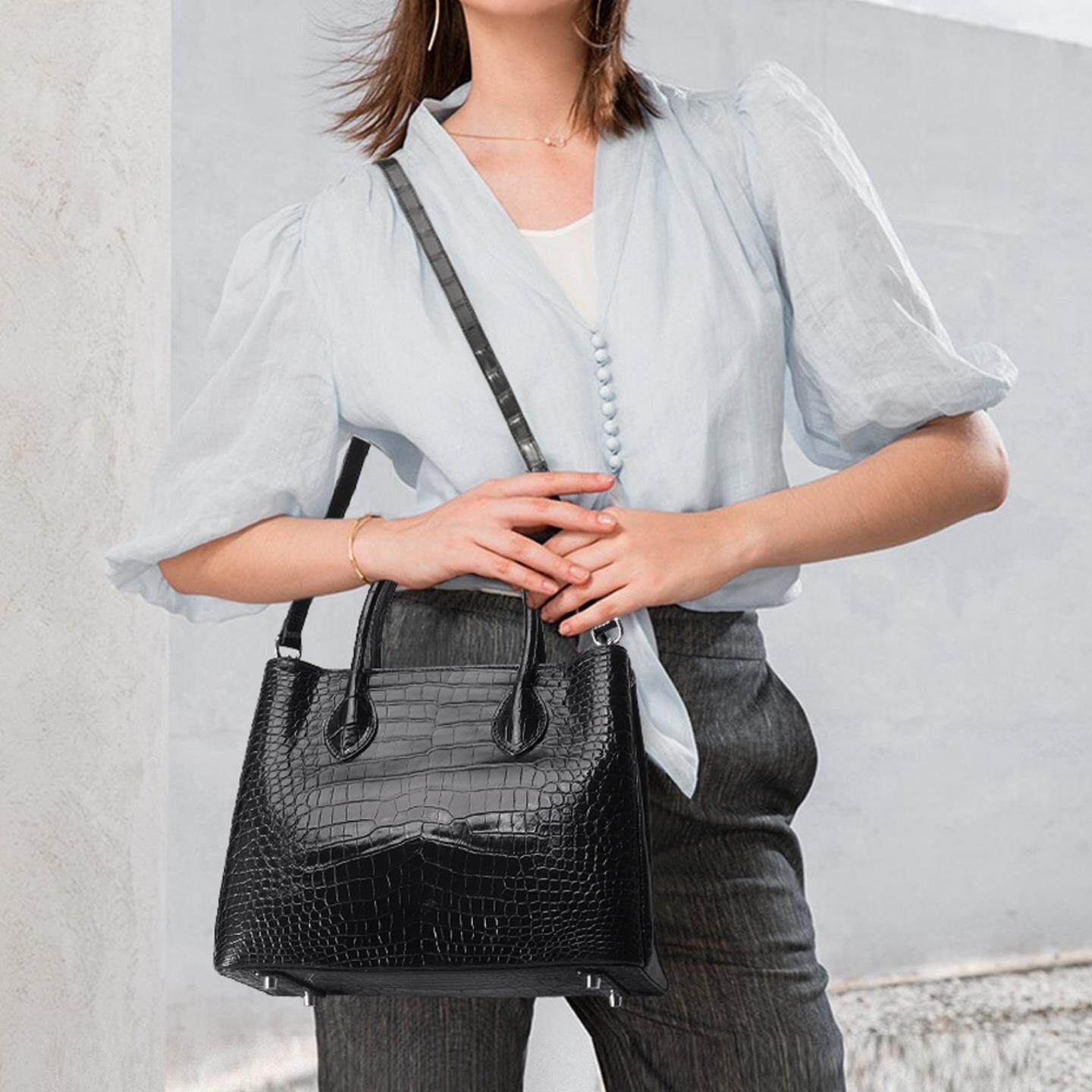 普洛克正品女包 暹罗鳄鱼皮真皮包包大容量鳄鱼肚皮手提包潮包包