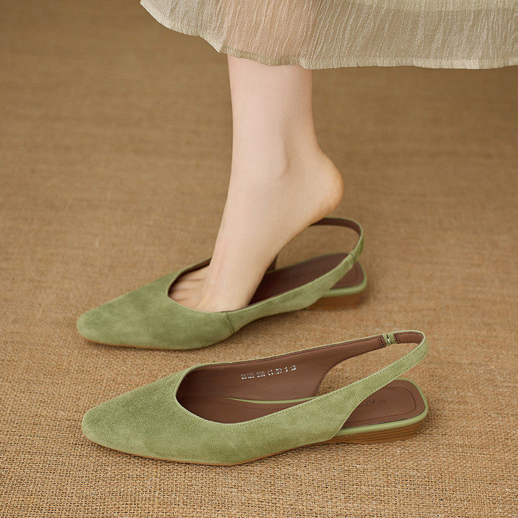 法式复古风真皮包头凉鞋女平跟后绊带羊皮百搭气质低跟简约新品夏