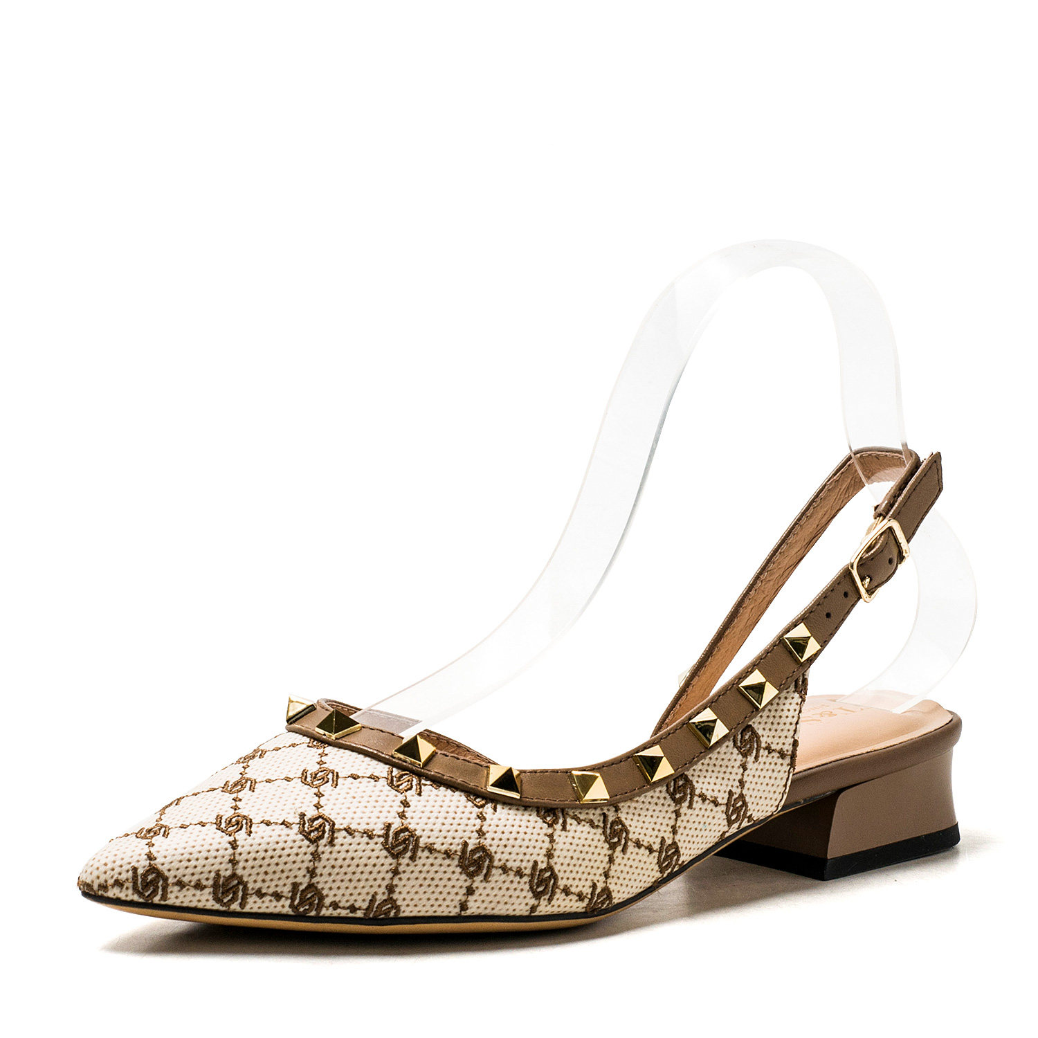 真皮包头凉鞋女春夏尖头中跟后空漆面牛皮鞋子铆钉浅口SS11114726