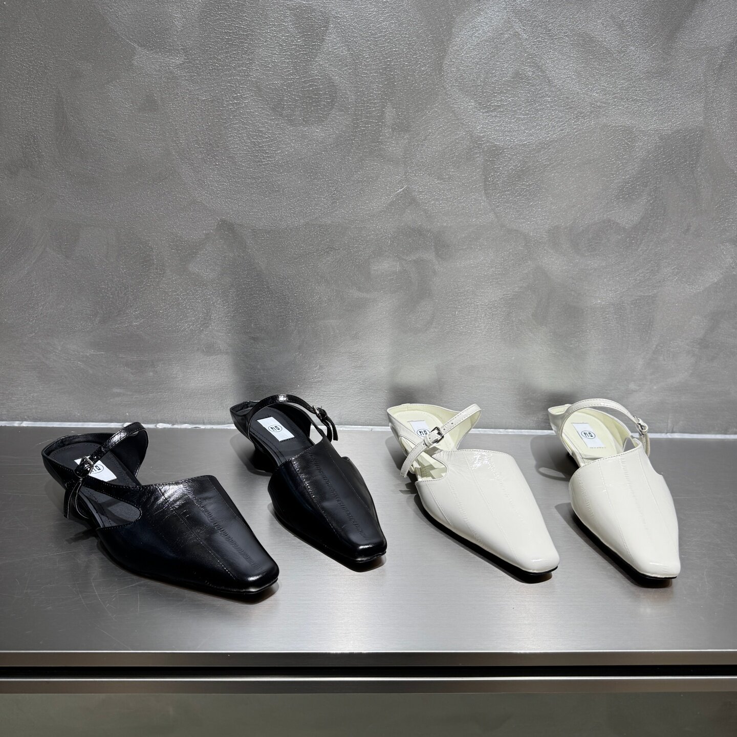 fed法式复古真皮包头凉鞋女夏新款一字扣带方糖扣低跟后空穆勒鞋