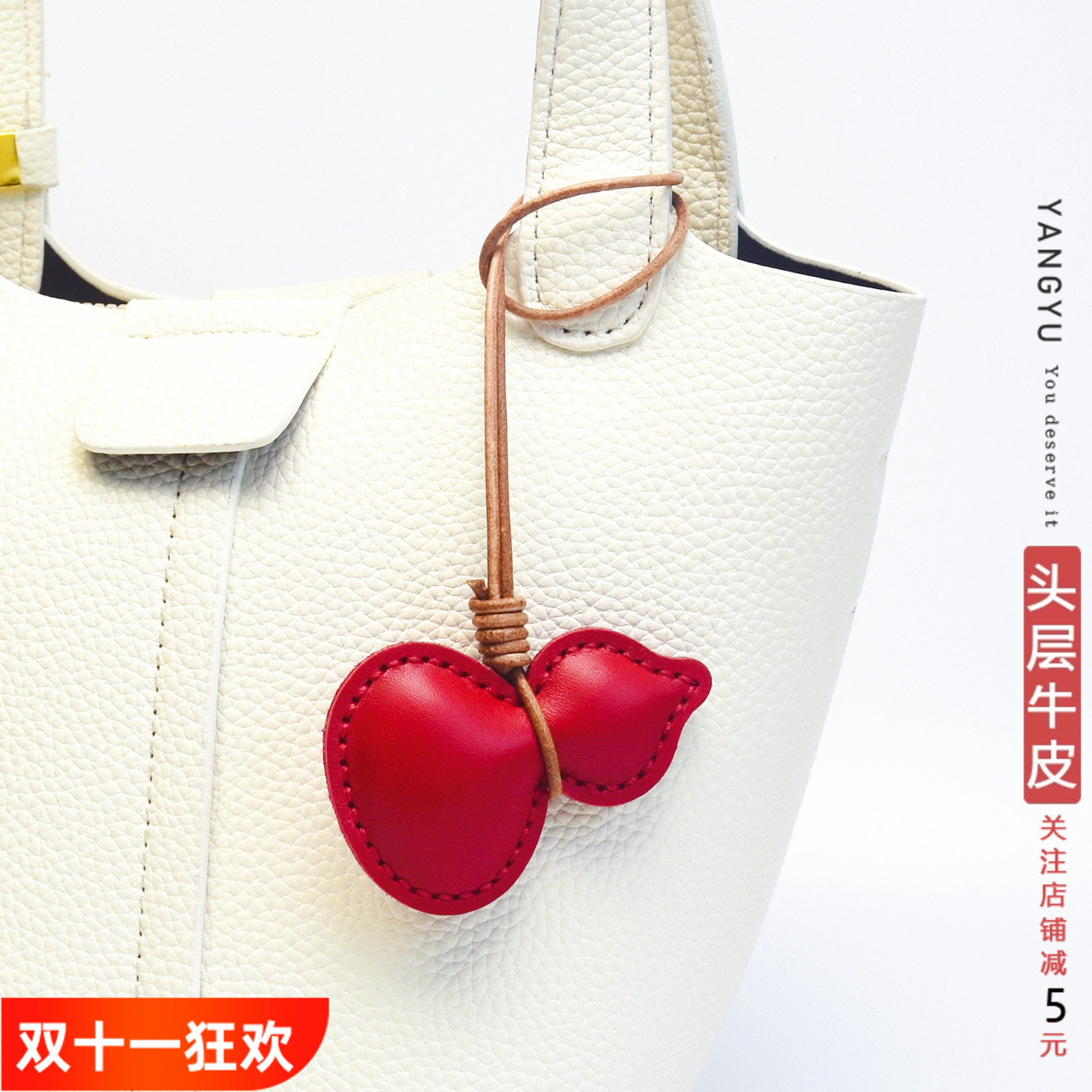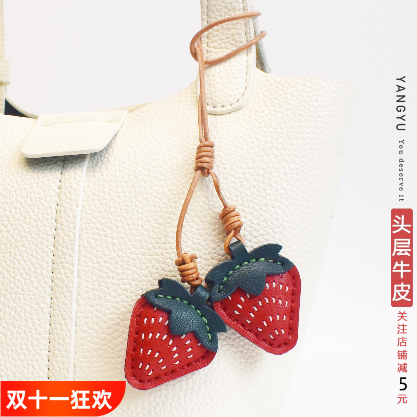 洋芋【莓天开心】头层牛皮包挂件真皮车内挂饰托特包水果草莓挂坠