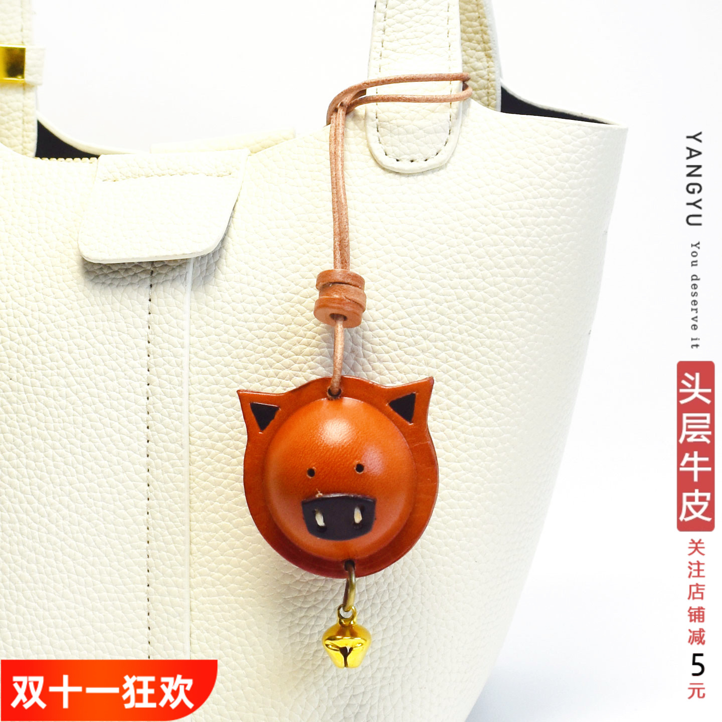 『平安小猪』北欧真皮包挂件汽车挂饰牛皮钥匙扣手帐毕业季伴手礼