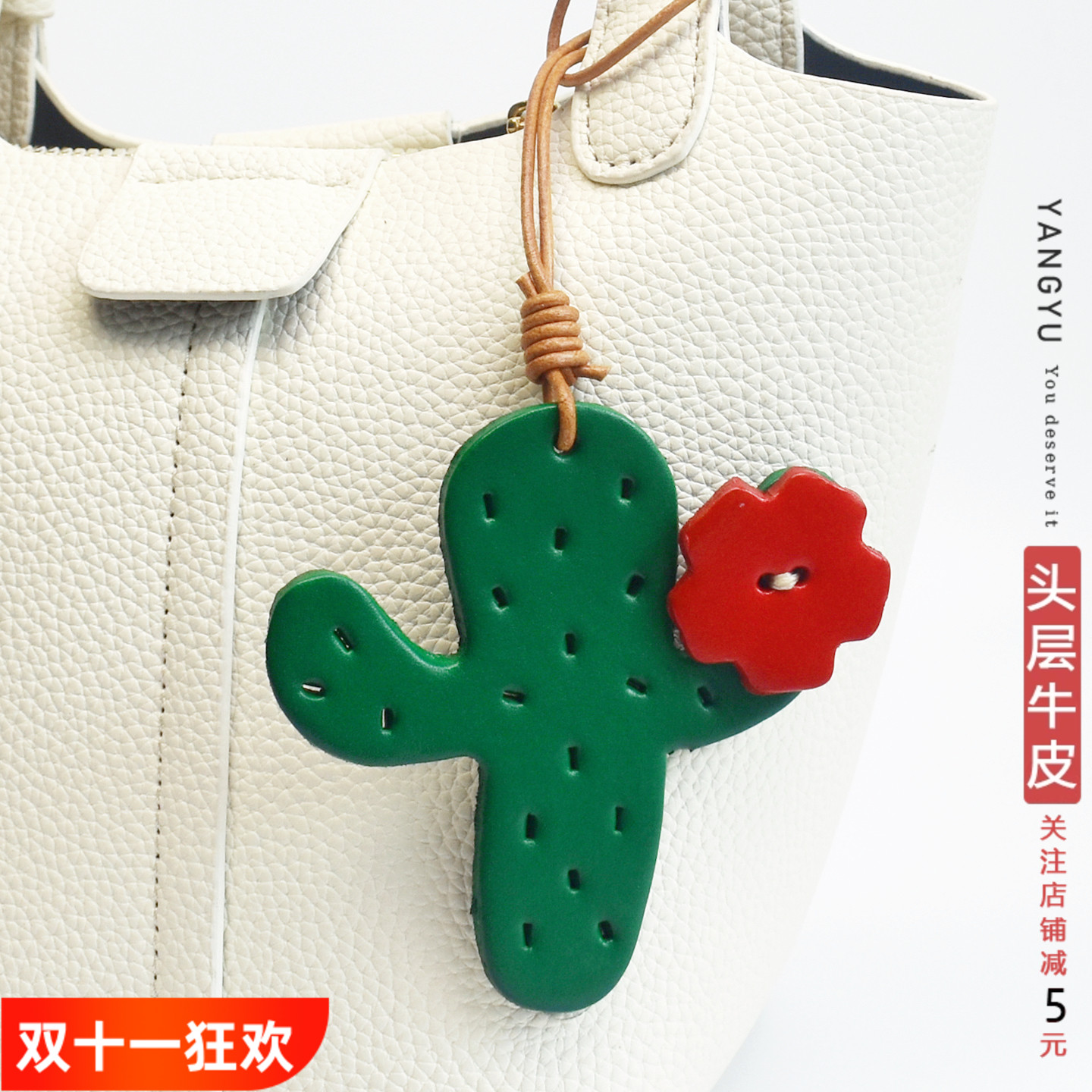 真皮【仙人掌】北欧手工牛皮包挂件钥匙扣包挂饰车吊坠男女包通用