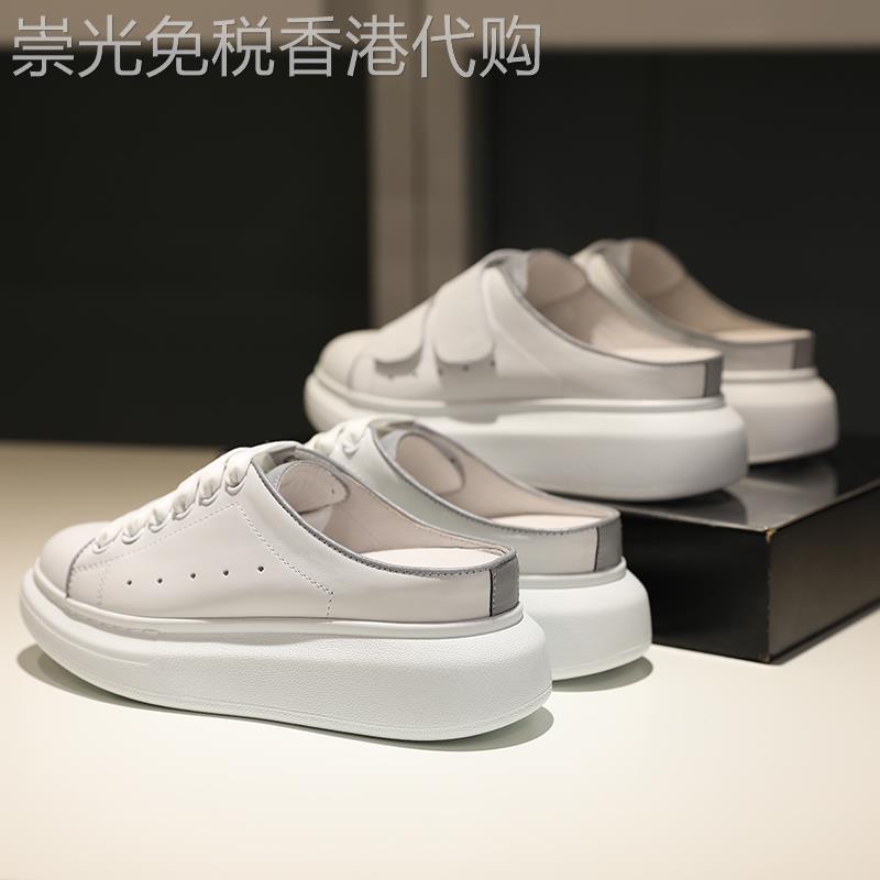香港真皮包头半拖鞋女外穿2025春秋季新款百搭懒人厚底松糕小白鞋