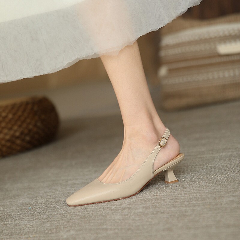 WM6温柔风真皮包头凉鞋女2026春新款欧货欧洲站坡跟后绊带通勤鞋