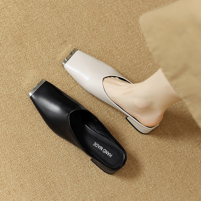 限时78~真皮包头拖鞋一脚蹬软面女春夏外穿半拖鞋方头平底穆勒鞋