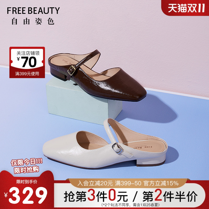 商场同款25年春夏新款自由姿色法式方头优雅低跟穆勒拖真皮包头拖