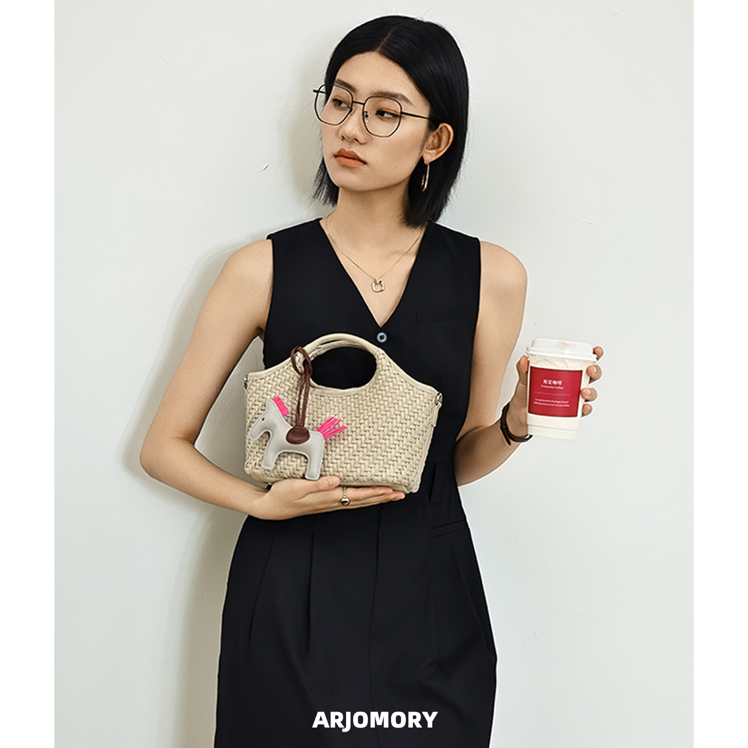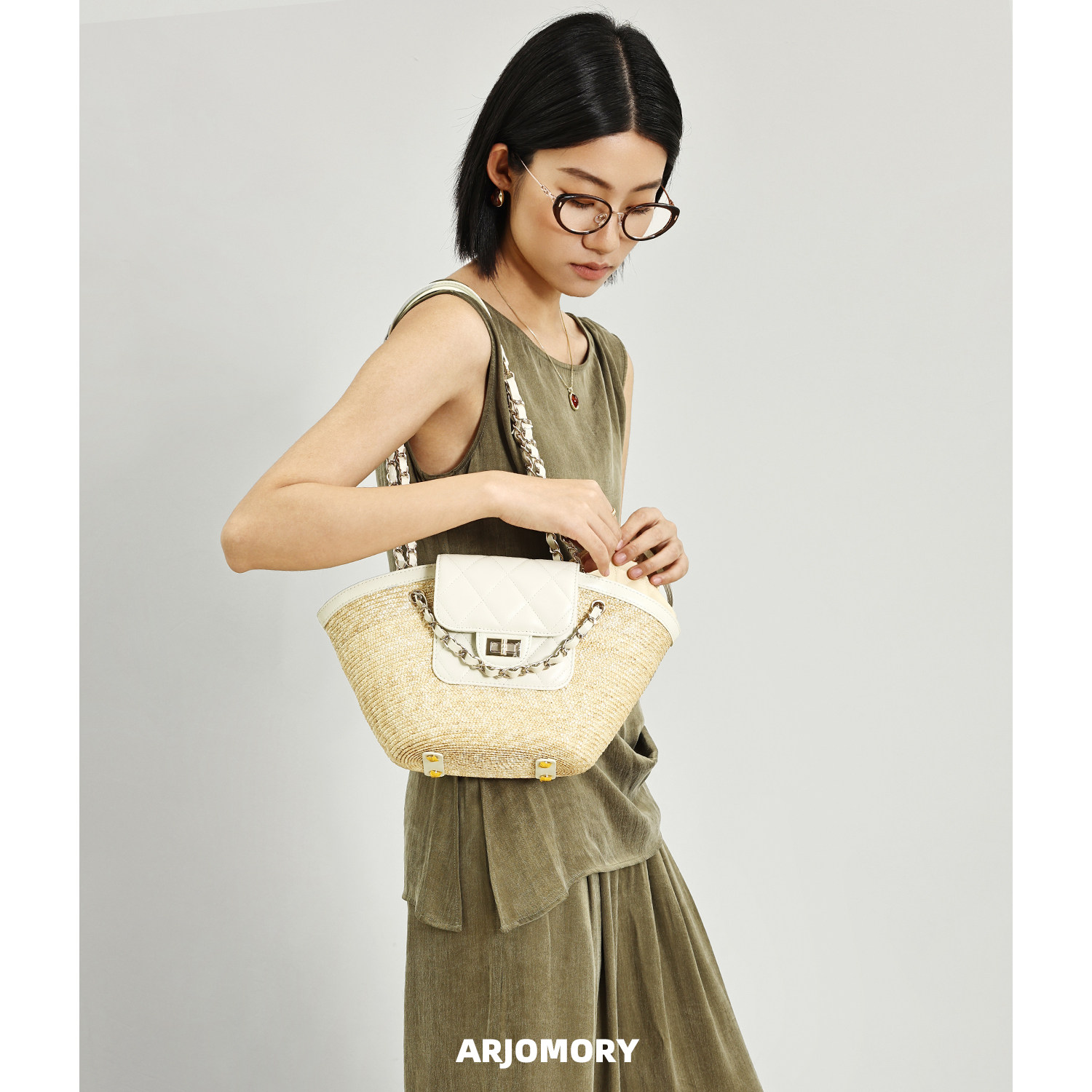 ARJOMORY新品大容量牛皮草编托特包2026夏季出行沙滩包单肩度假包