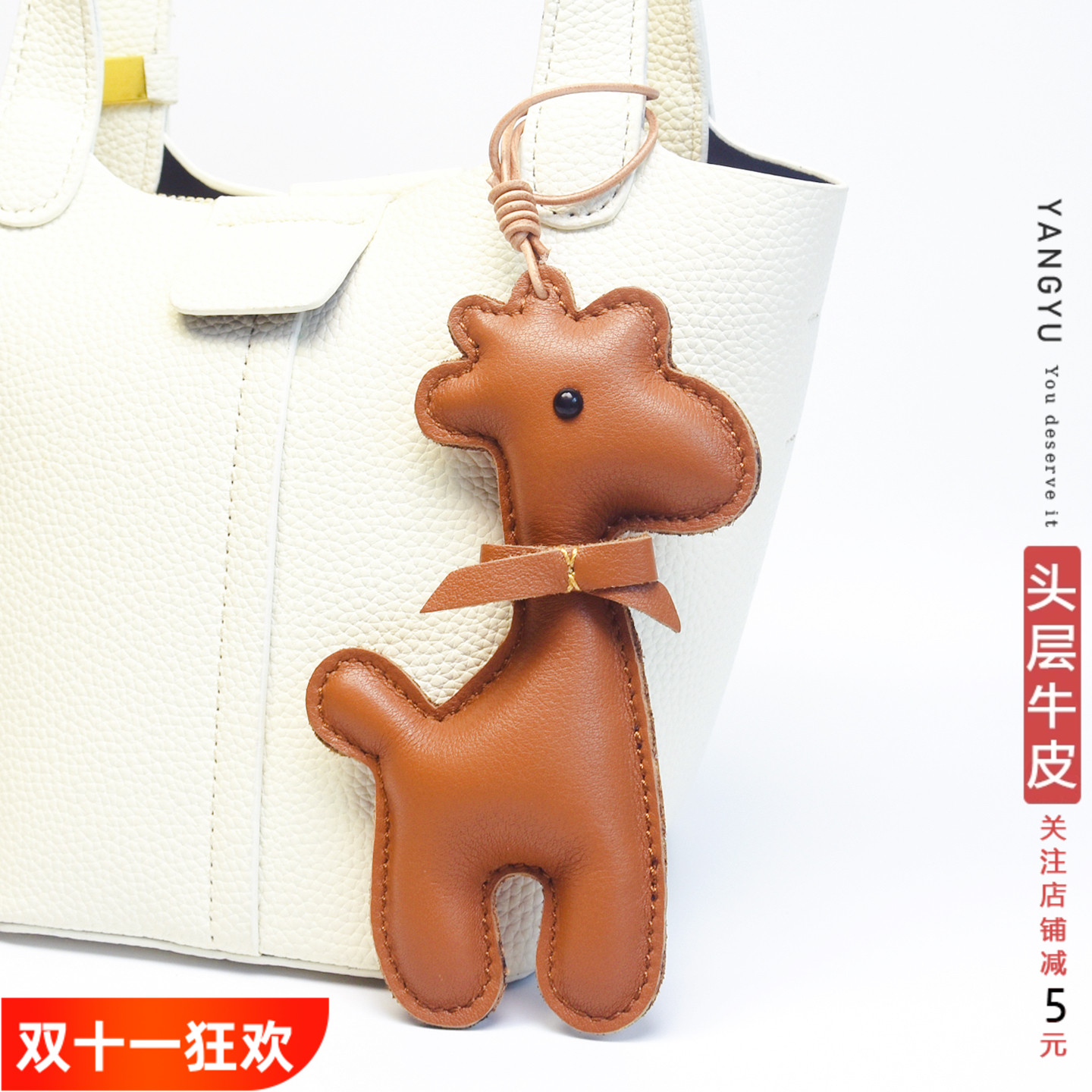 真皮小鹿~北欧ins头层牛皮包挂件汽车钥匙扣动物卡通生肖饰品可爱